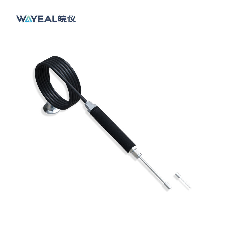 The sniffer probe is a sampling device used for close-range localization and detection of helium leaks on workpiece surfaces. Featuring a unique pinhole structure and capillary tubing, it delivers exceptionally high sensitivity ( 5×10⁻⁹ Pa·m³/s) and rapid response. It is compatible with various leak detectors, and its detachable tip facilitates easy cleaning. With a standard length typically ranging from 2.5 to 5 meters, its core function is to draw in leaking helium and deliver it to the leak detector, enabling precise localization of leak points.